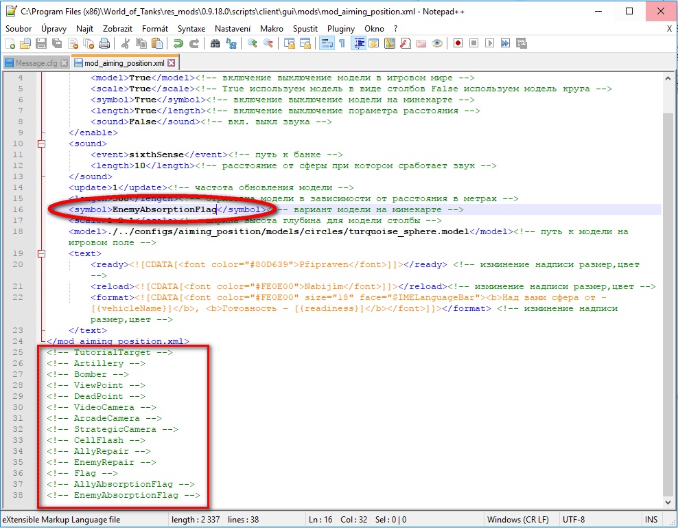 V souboru, který naleznete zde 1.7.1.1\scripts\client\gui\mods (mod_aiming_position.xml) si můžete nastavit i jiný typ markeru na minimapě. (viz screen) stačí nahradit text co je v configu