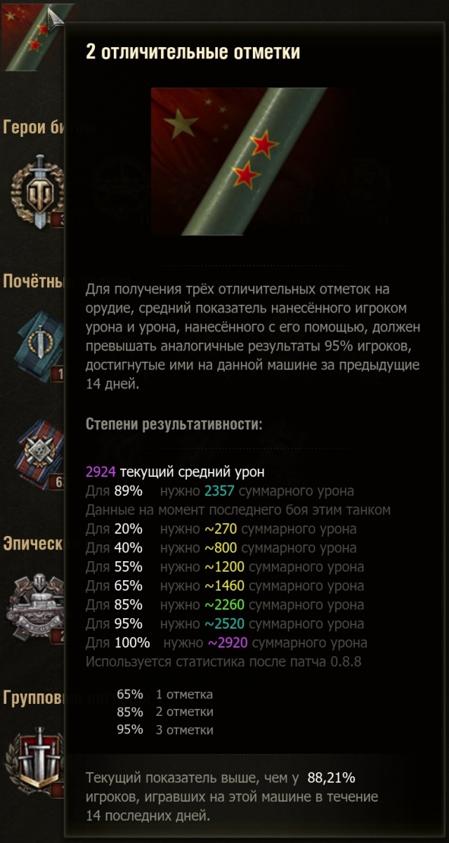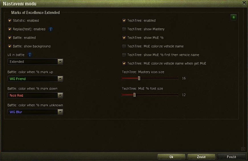 Marks of Excellence je mód co vám ukazuje body mistrovství přímo v bitvě pro dosažení znaku na děle.